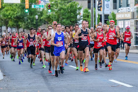 M50+ I have grown used to writing that 'the Greater Springfield Harriers took the division with ease. Last year they cracked 50 minutes and won the 5K title here by almost three minutes. At Virginia Beach for the 8K Championship, they won the division by almost 11 minutes! But this year they looked, if not vulnerable, at least approachable. Nat Larson had not raced since the 10K Championships in Dedham in April. Lemme had been up and down since running the Boston Marathon in mid-April. His best times this year do not come close to the times he was running in 2018. The Garden State Track Club and Atlanta had entered teams that would test the favorites. Larson was off his best but, luckily for Springfield, his pretty good is still fast. He and his teammate, Mark Hixson came across the line 1-2 for teams in 16:54. That took some of the pressure off of Lemme, who is furthest from being race fit. When the top 2 for Garden State, Mark Zamek and Joseph Hegge finished in 17:06 and 17:27, that opened up the possibility that they might get a 3rd runner in ahead of Lemme and if Lemme had a disastrous race, they might win. Of course, their third runner would also have to beat Springfield's Francis Burdett. Burdett always seems to be fighting his way back from injuries these days but he knows a lot about battling in races where he is not fully fit. Nor was Atlanta out of it either. David Matherne and Brad Slavens finished in 17:35 and 17:40. When their 3rd runner, Gary Droze, crossed the finish line in 17:55, that gave Atlanta three runners finished with a total of 53:10 and a 17:44 average. Two seconds later Lemme closed things out for Springfield, giving them a 51:45 for an average of 17:15. Another two seconds saw Garden State's Richard Osifchin finishing off Garden State's score at 52:32 or an average of 17:31, good for 2nd place. Another 8 seconds saw Burdett come across the line for Springfield. Even if Lemme had run into trouble, Burdett would have delivered a fast enough time to keep Springfield well ahead of Garden State. Atlanta's B and C teams finished in 4th and 5th in 55:38 and 1:00:21.